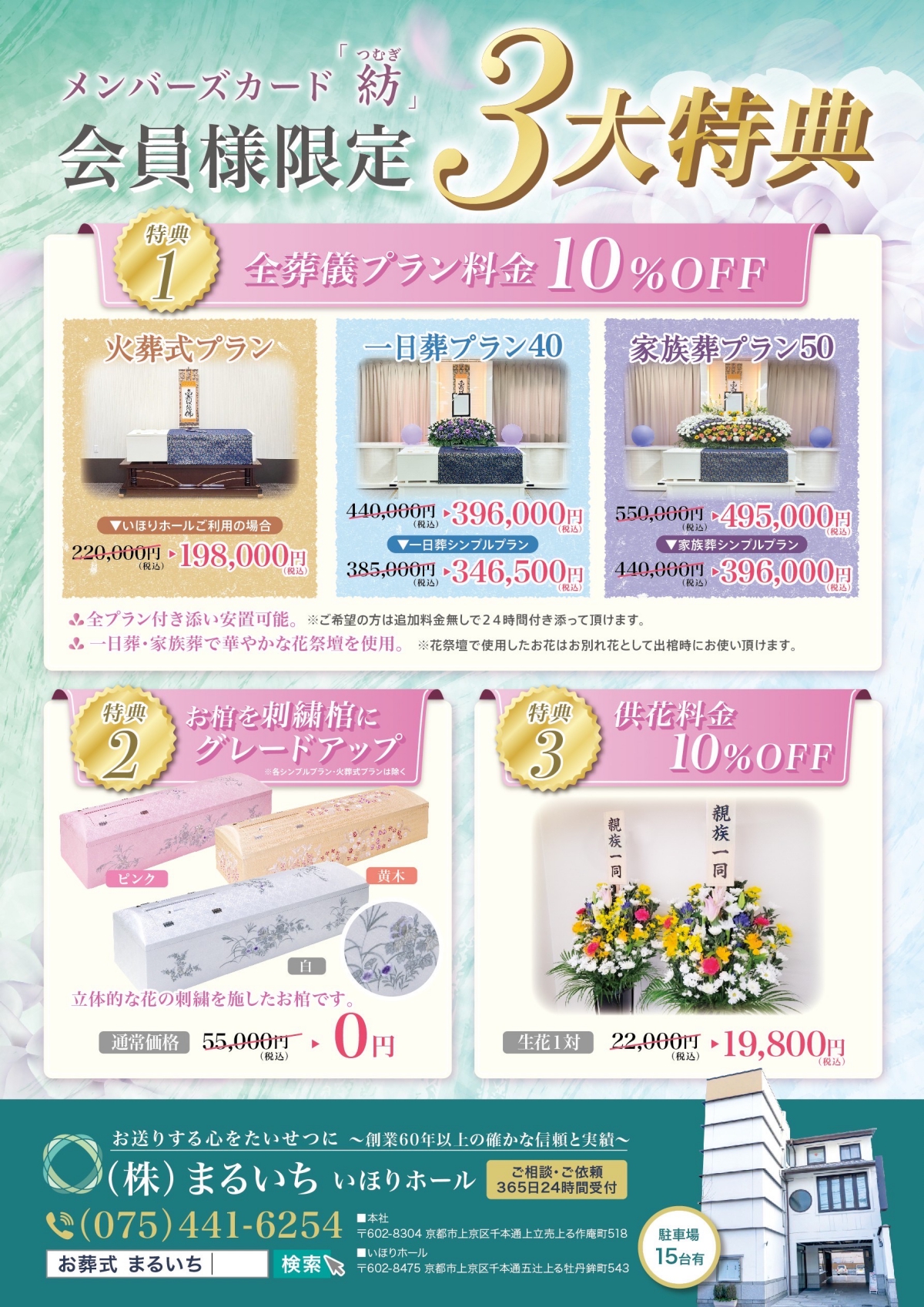 葬儀、供花費用割引は弊社全プランに適用可能です。